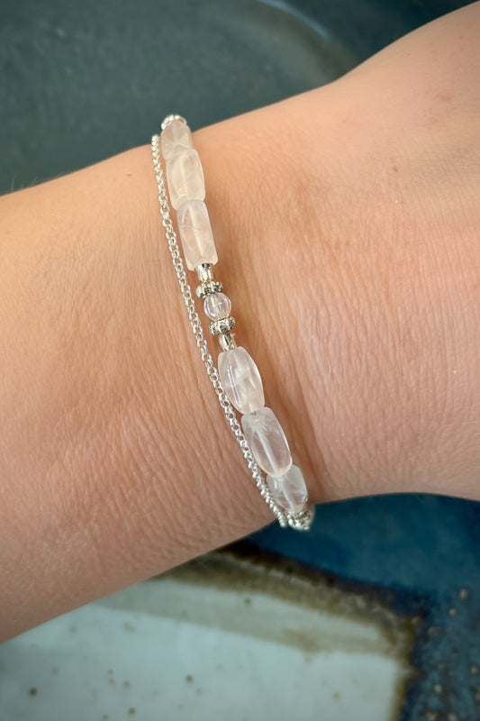 Illyra Bracelet - Copper Herringbone Wrapped Rose Quartz and Crystal