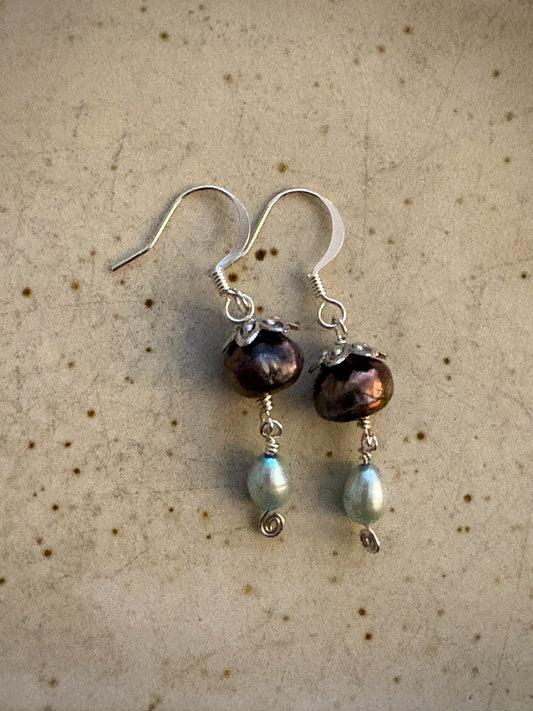 Alejandra Earrings - Moss Agate and Cherry Quartz