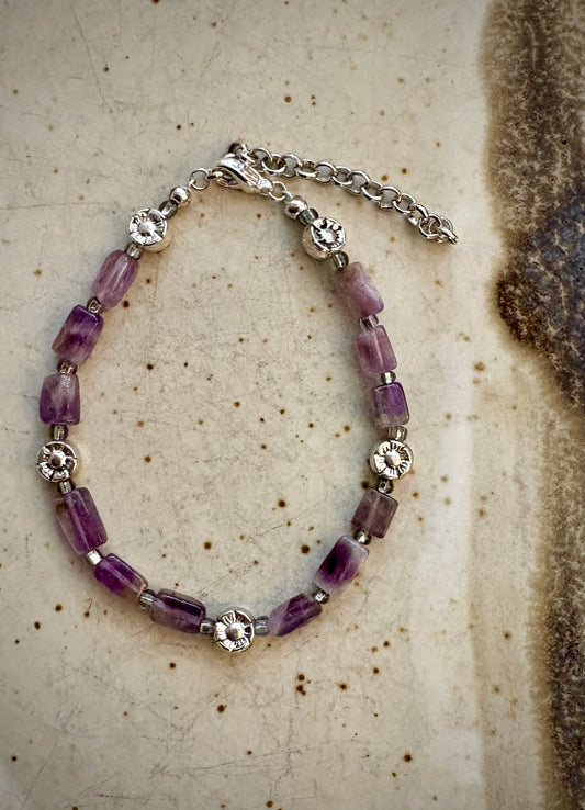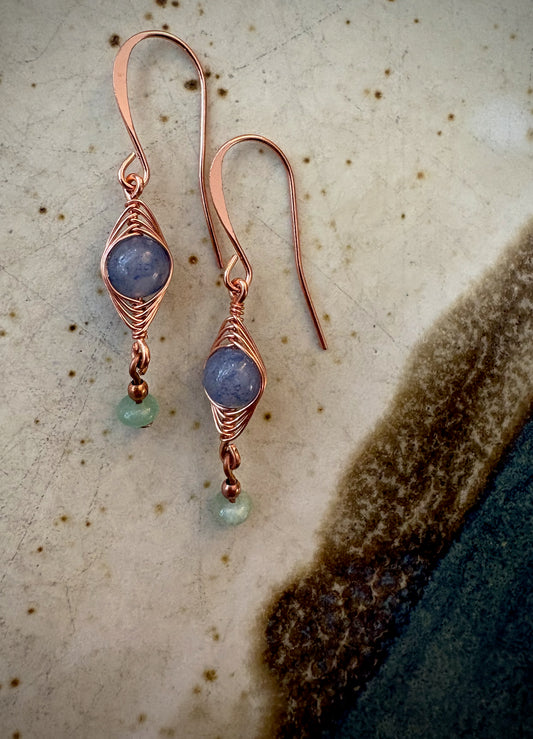 Illyra Bracelet - Copper Herringbone Wrapped Rose Quartz and Crystal
