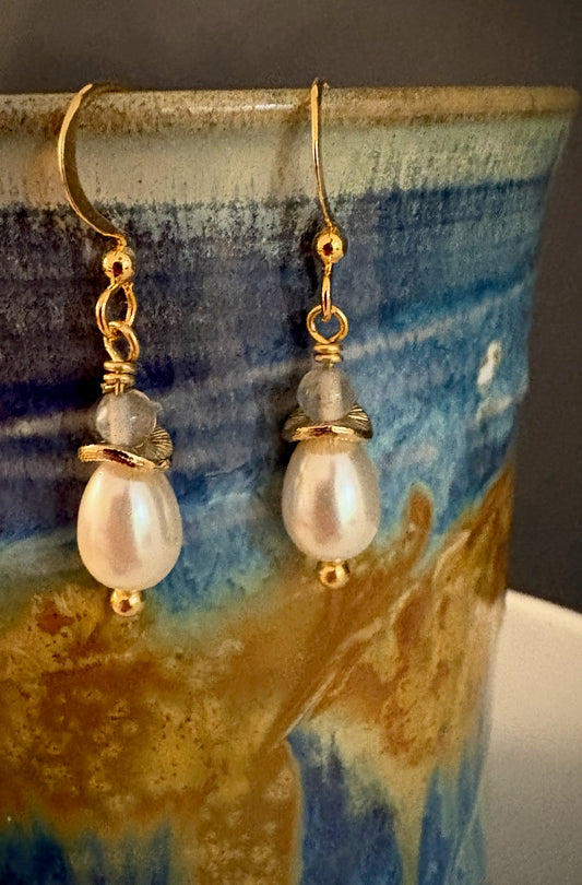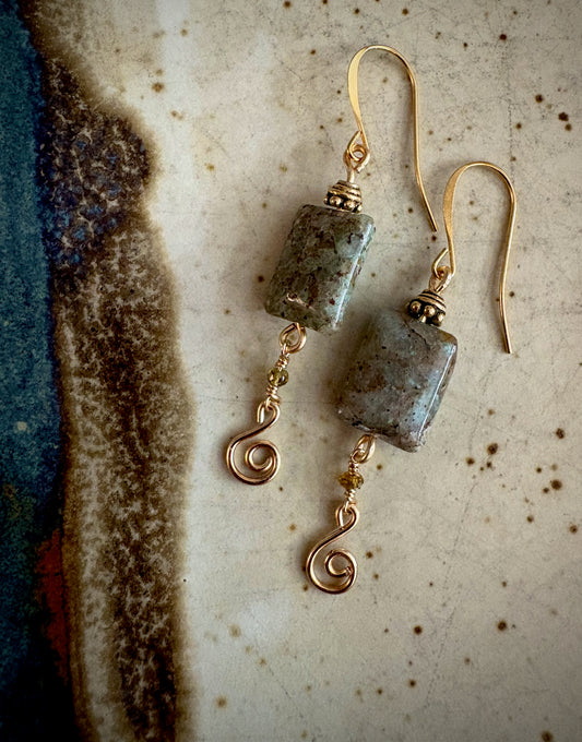 Alejandra Earrings - Moss Agate and Cherry Quartz