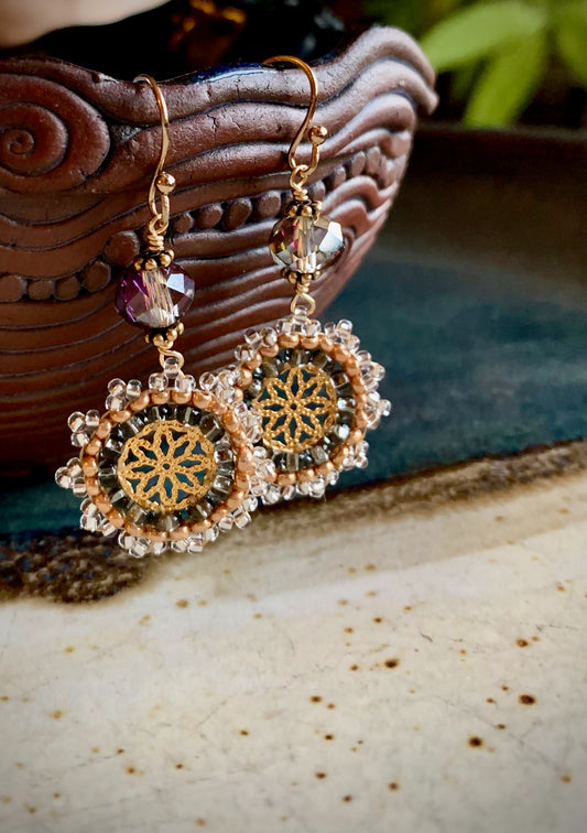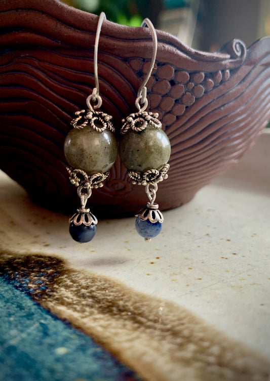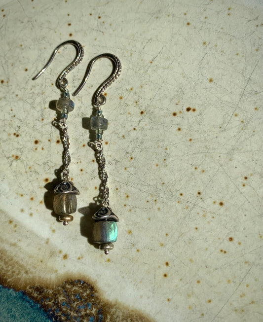 Energía Earrings - Labradorite and Seed Bead with Spirals