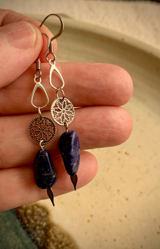 Encanto Earrings - Lapis Lazuli with Sterling Silver Teardrop