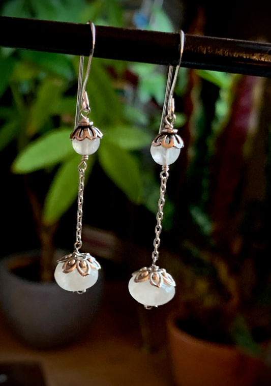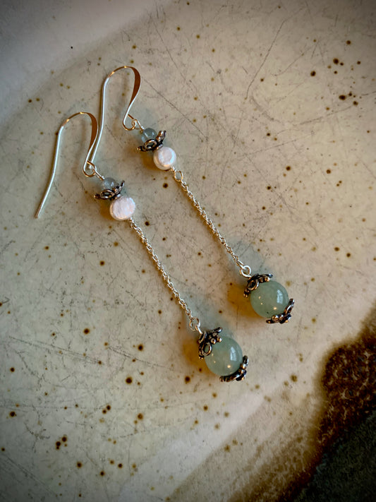 Descanso Earrings - Aquamarine, Pearl, and Ghost Quartz Drops