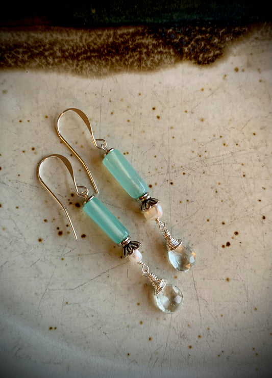 Cielo Earrings - Blue Chalcedony, Pearl, and Aquamarine