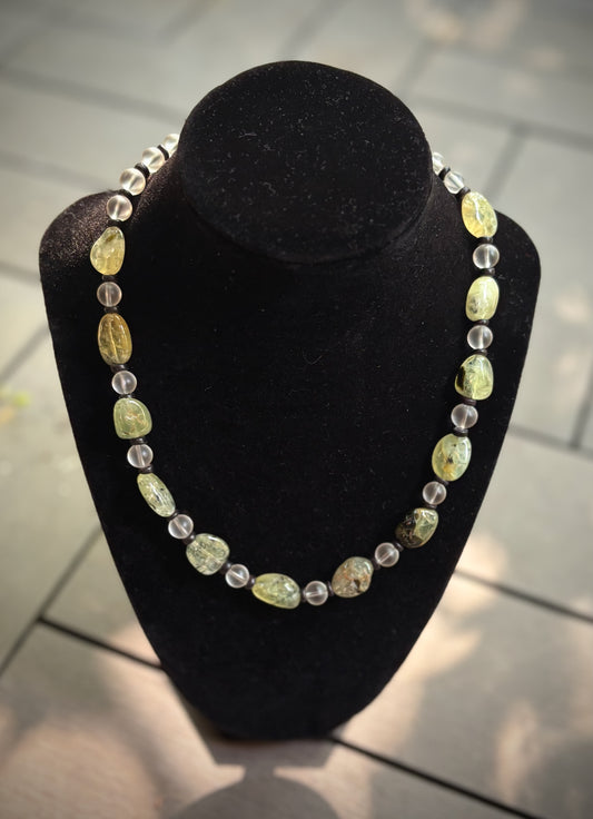 Kaone Necklace - Prehnite (Grade A) with Vintage Glass