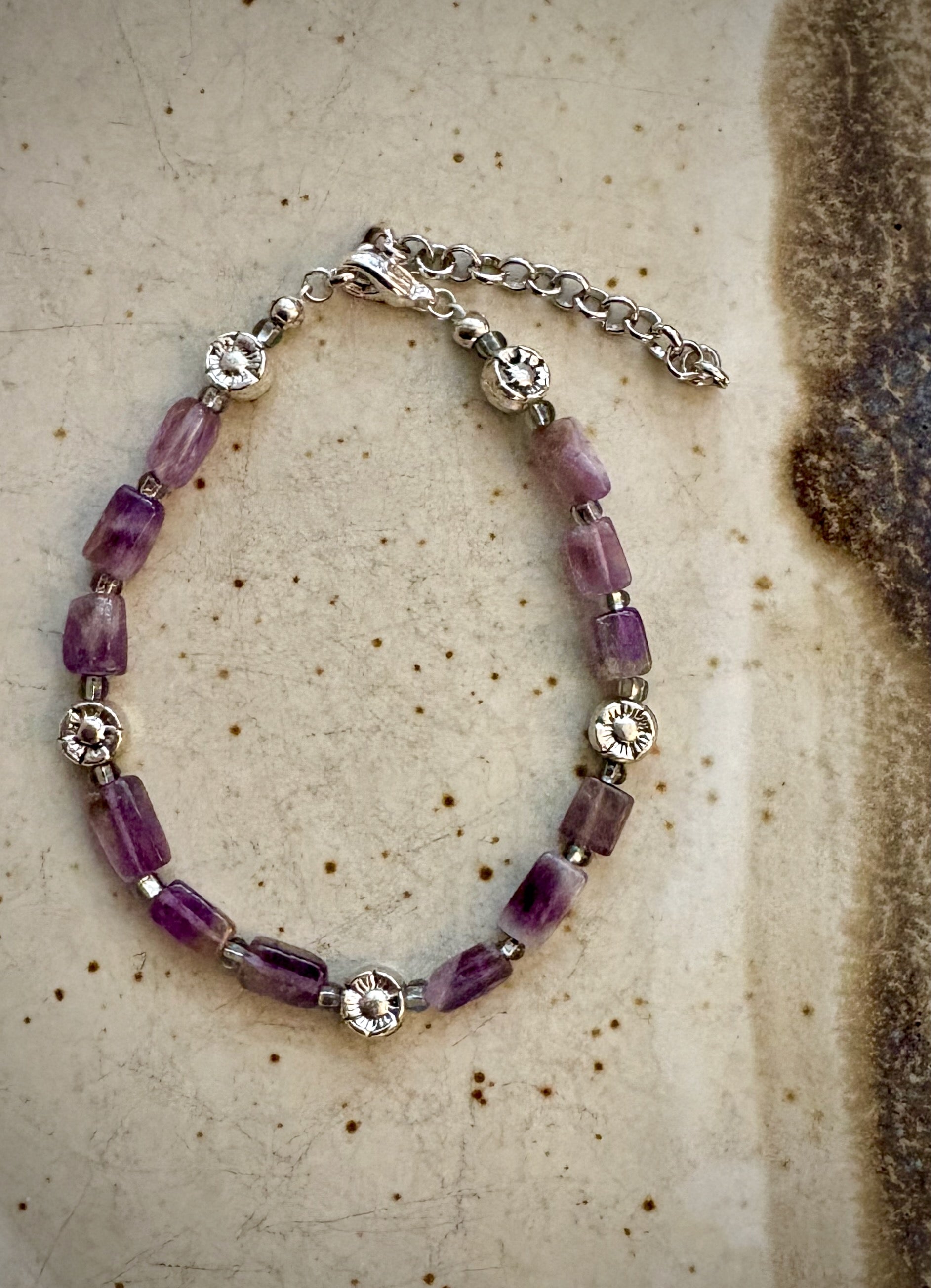 This elegant bracelet features beautiful amethyst stones and comes equipped with a secure lobster clasp for easy fastening. An adjustable 1.5 inch extender chain ensures a comfortable fit.