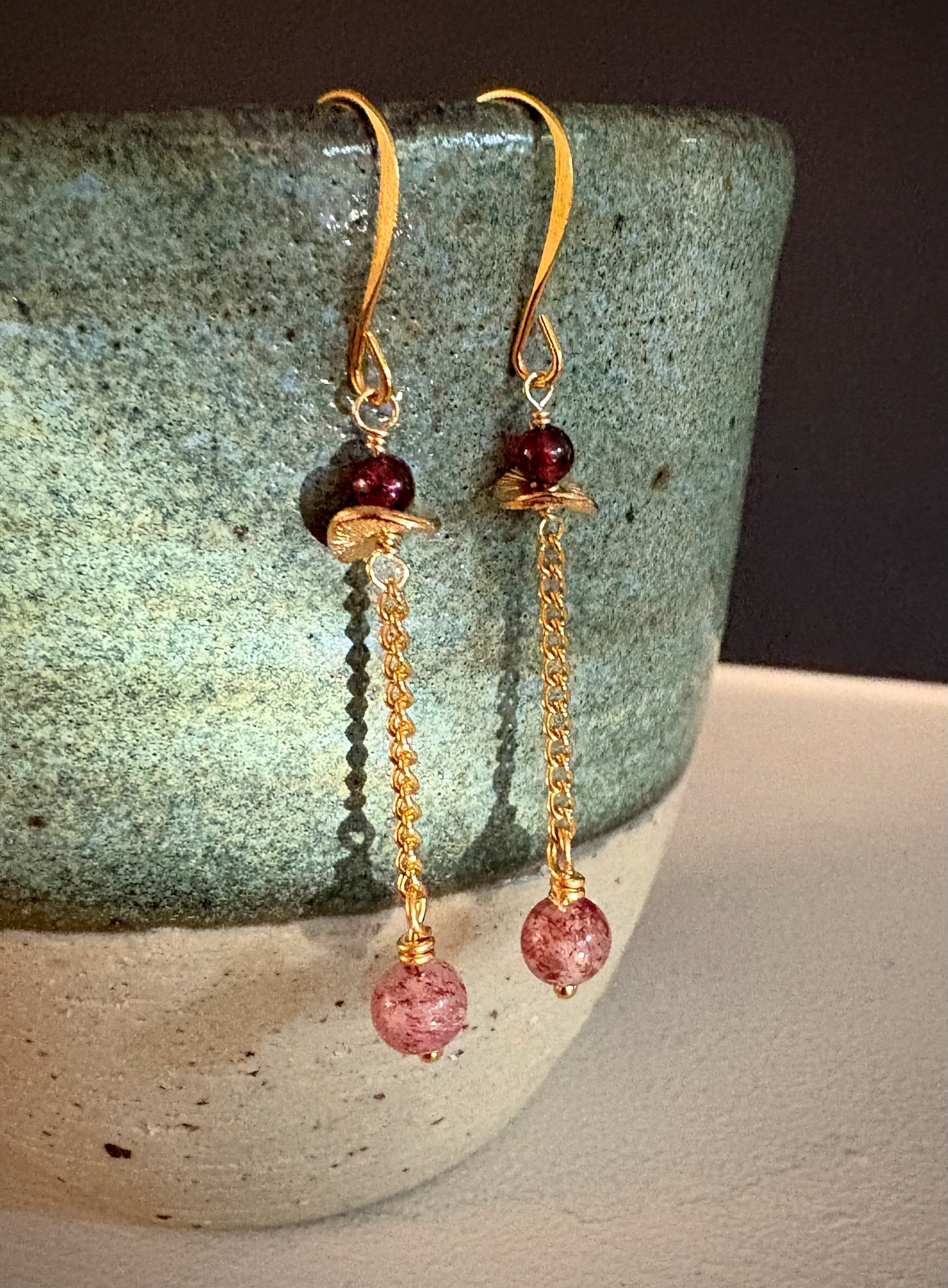 Majestuosa Earrings - Garnet and Strawberry Quartz