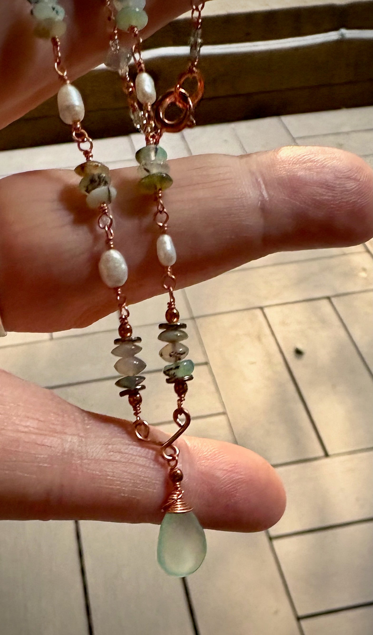 Tiara Necklace - Chalcedony, Pearl, and Amazonite on Wire Wrapped Copper