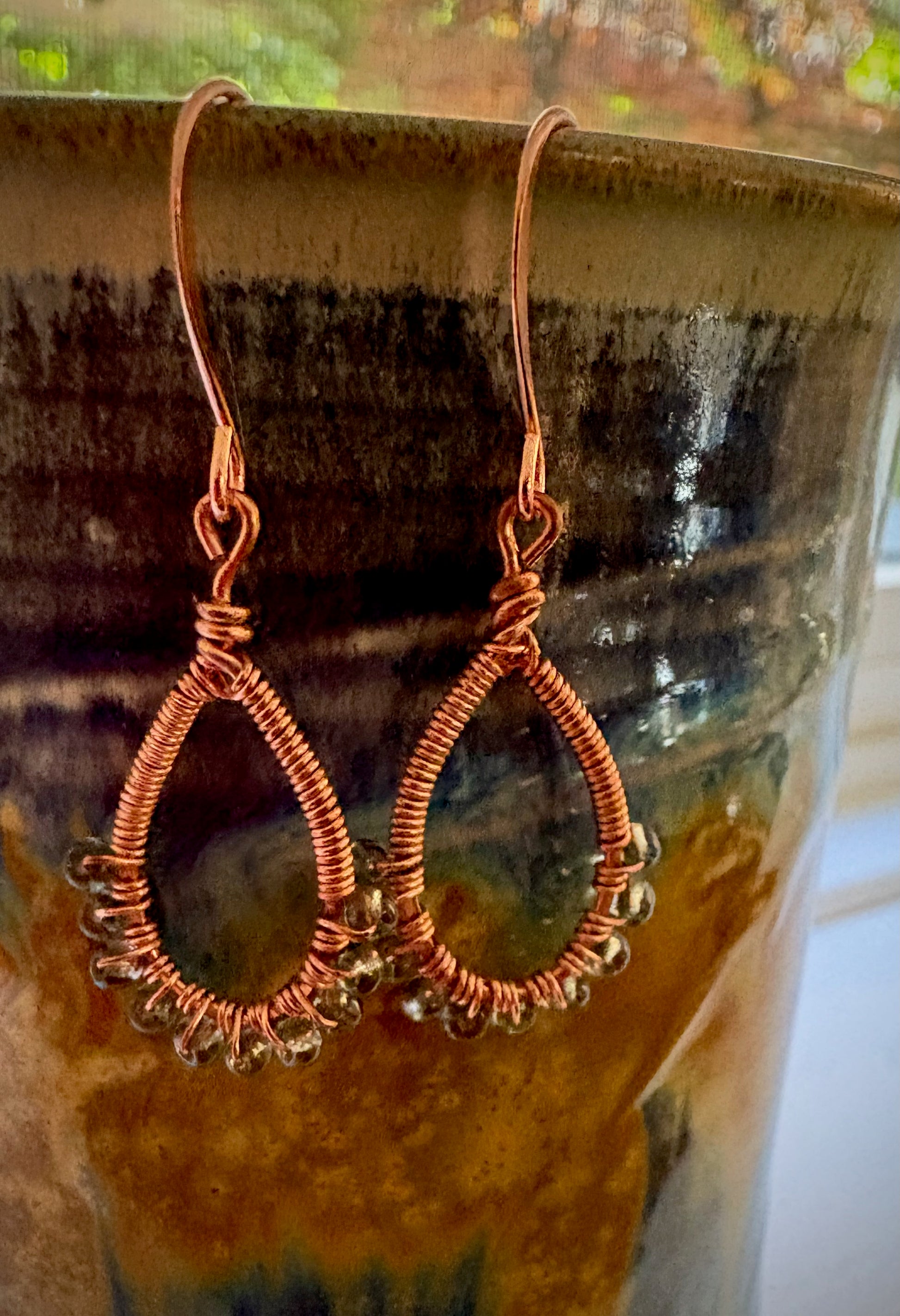 Ximena Earrings - Copper Wire Wrapped Glass Seed Beeds